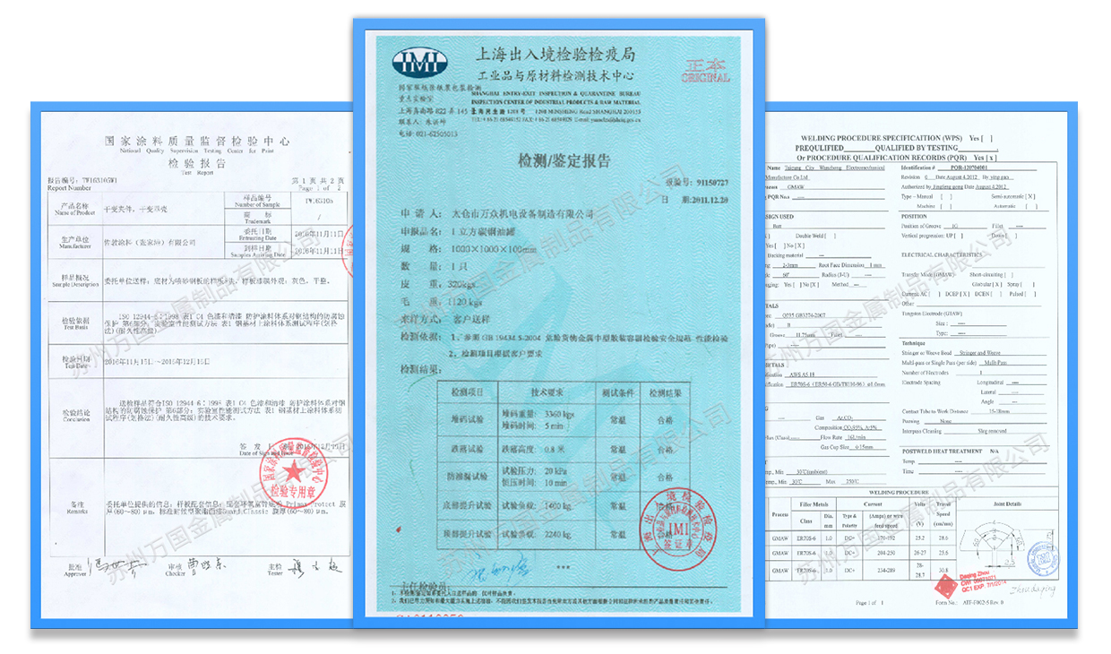 我們嚴(yán)格地運(yùn)行生產(chǎn)過程的質(zhì)量管控和成品檢驗,并擁有WPS焊接工藝評定、C4-H防腐認(rèn)證、罐體鑒定檢測報告等,確保給客戶提供高品質(zhì)、高性能的產(chǎn)品